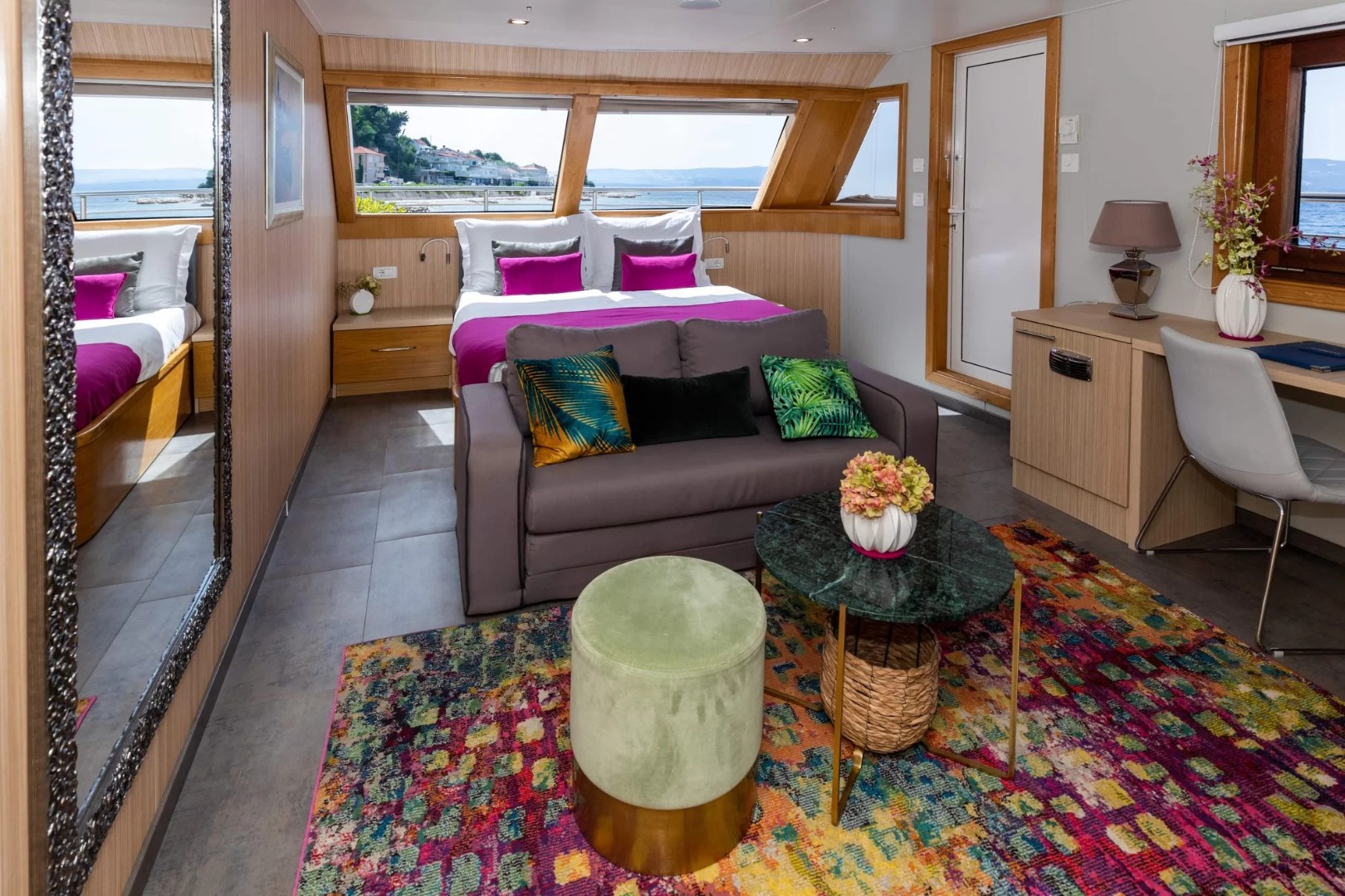 Experience luxury cruising along Croatia's stunning coastline aboard MS Adriatica, a lavish vessel launched in 2018. With 18 cozy cabins catering to 35 passengers, including 2 exclusive VIP cabins on the top deck boasting panoramic views and private terraces,  MS Adriatica ship ensures an unforgettable journey. Each cabin is meticulously designed for comfort, featuring modern amenities, air-conditioning, and either twin or double beds.