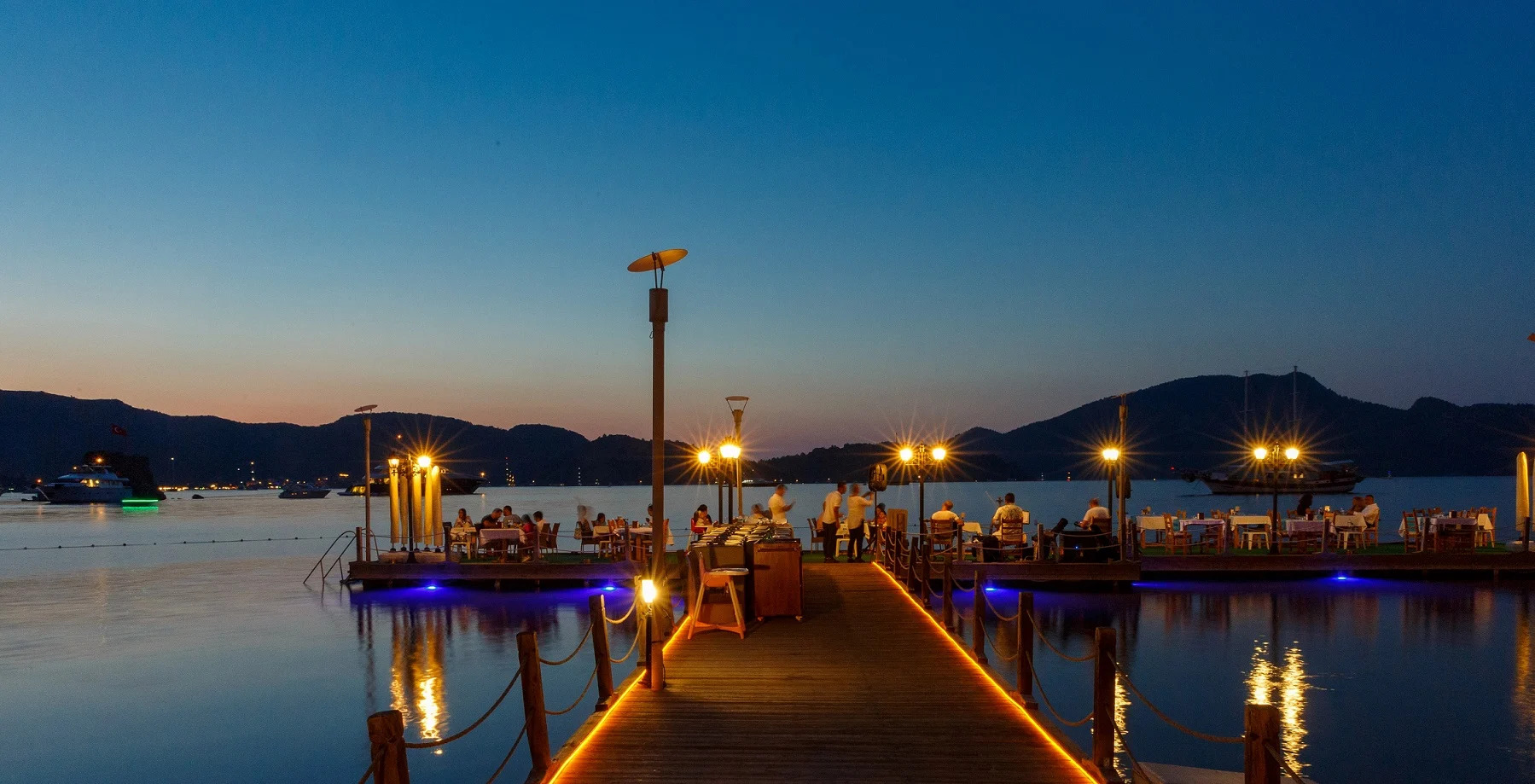 An enjoyable dining experience awaits throughout the day. Guests can savour flavours from local, national, and international cuisines with the hotel’s à la carte service, available at the beach, patio, pool area, and in the evening at the pier and the open and covered sections of the restaurant. Each meal is prepared to suit a variety of tastes, from relaxed daytime dining to atmospheric evening dinners by the sea.
