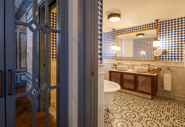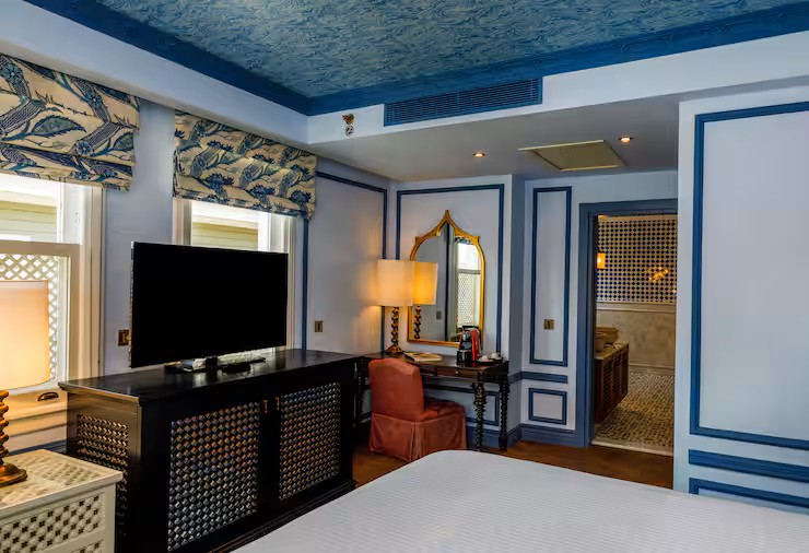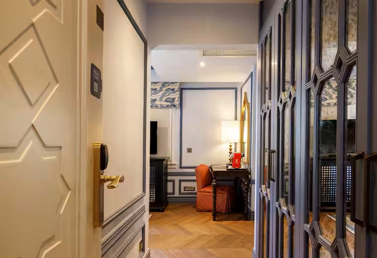 Each room is beautifully appointed with baroque-style furnishings, elegant lighting, and portrait-style artworks, turning every space into a masterpiece. Guests can unwind in elegant en suite bathrooms featuring Turkish hammams and deep soaking bathtubs. The suites offer elevated comfort with intricate wooden details, curated artwork, and spacious living areas overlooking the mansion’s tranquil gardens.